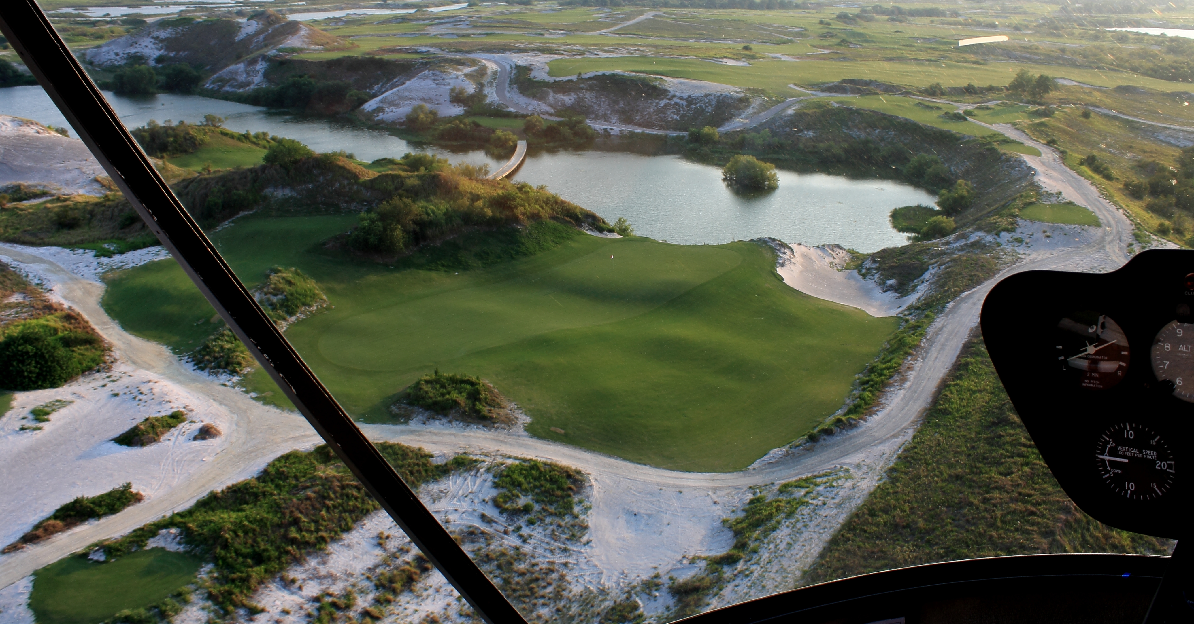 Sadly, our golden hour window each morning and afternoon was hampered by the onset of humidity often found in early-June Florida. We needed “October skies,” which unfortunately did not match Golf Digest’s teaser piece schedule. Stephen bought the use of helicopter for two evening flights and I jumped at the chance to stay on site, lock the gate, and as it turns out, take two rides.